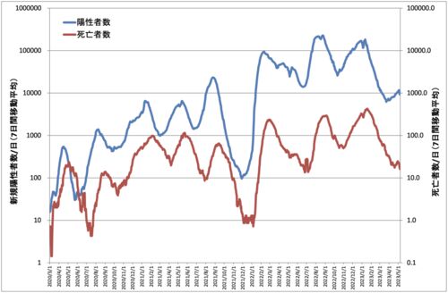 国内の新型コロナウイルス感染症の新規陽性者数及び死亡者数のグラフ(NHKのデータ*1に基づく)を以下に示す。 国内のCOVID-19新規陽性者数及び死亡者数 (2020/3-2022/2, 7日間移動平均対数=NHK) ご覧の通り、新規陽性者数のピークアウトが確認されるが、死…